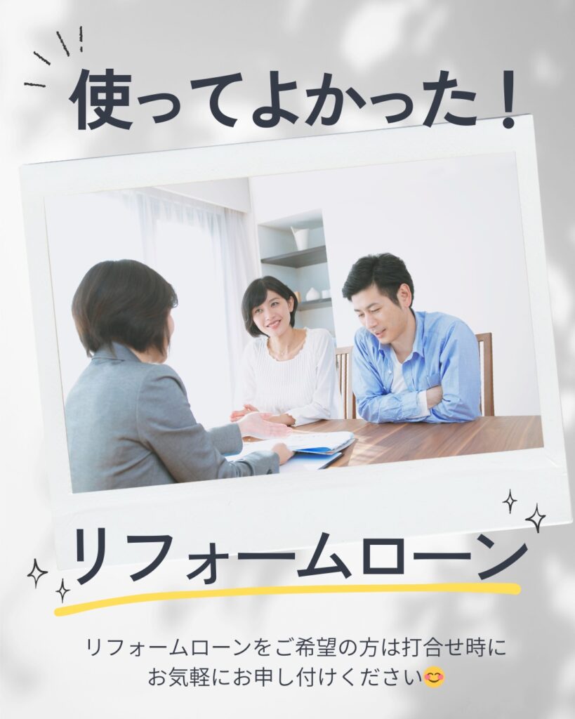 2026.01.30 お知らせ リフォームローンのご紹介♪ 様々なお客様にご利用頂いております。 低金利でお手続きも簡単ですので、お気軽にご相談ください。 施工事例はこちらから👈 資料請求はこちらから👈 新規無料相談のご予約はこちらから👈 お気軽にお問い合わせください😊 一覧へ戻る 現場巡視活動👷