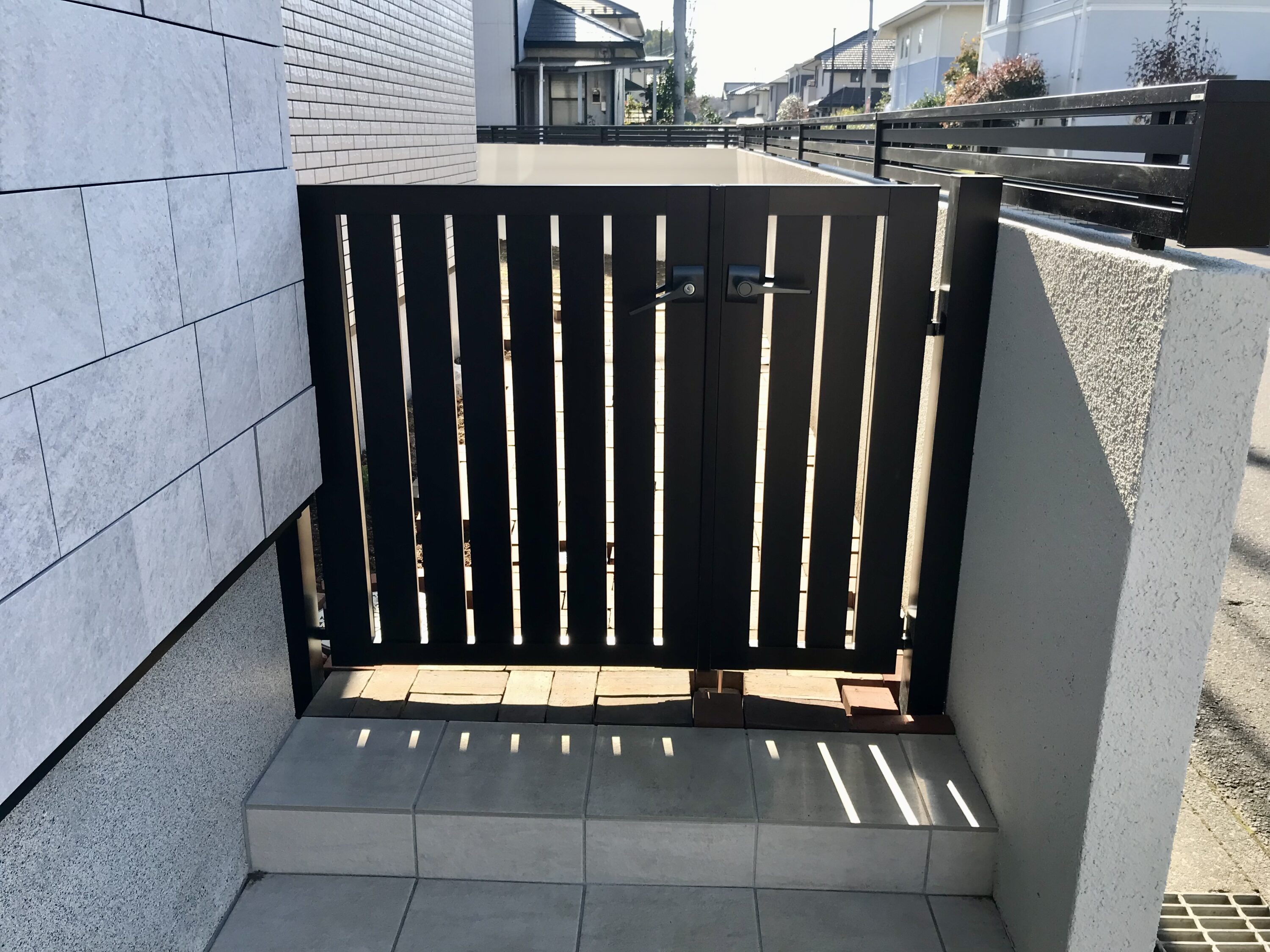 プライベートドッグランでわんちゃんが楽しく思いっきり遊べるように脱走防止の門扉と高さのあるグランドアートウォールでオシャレに仕上げました。