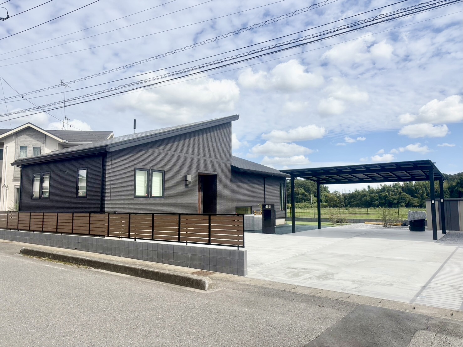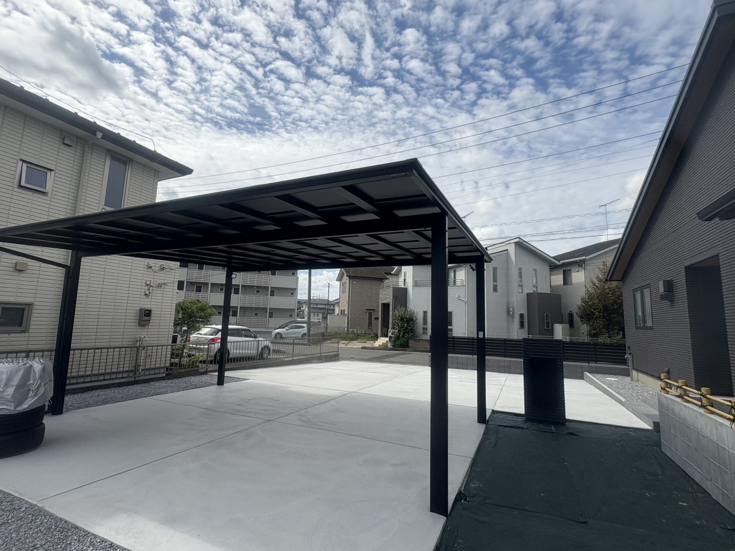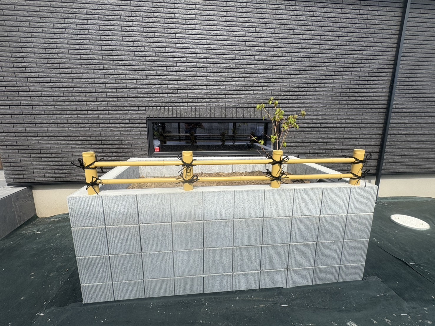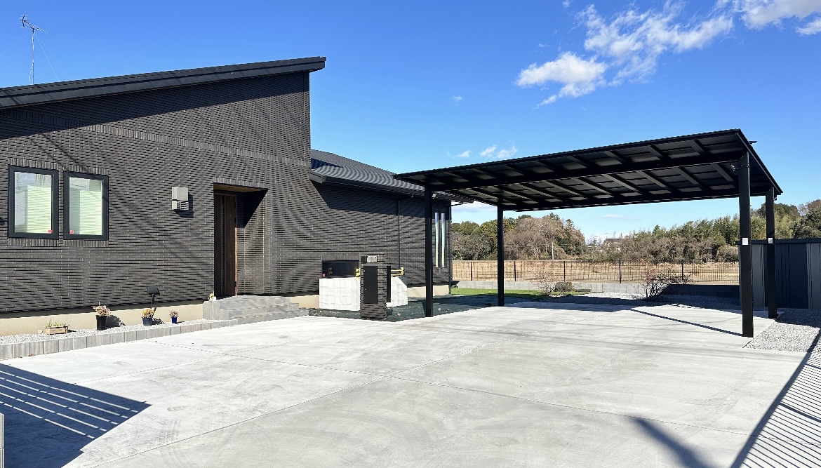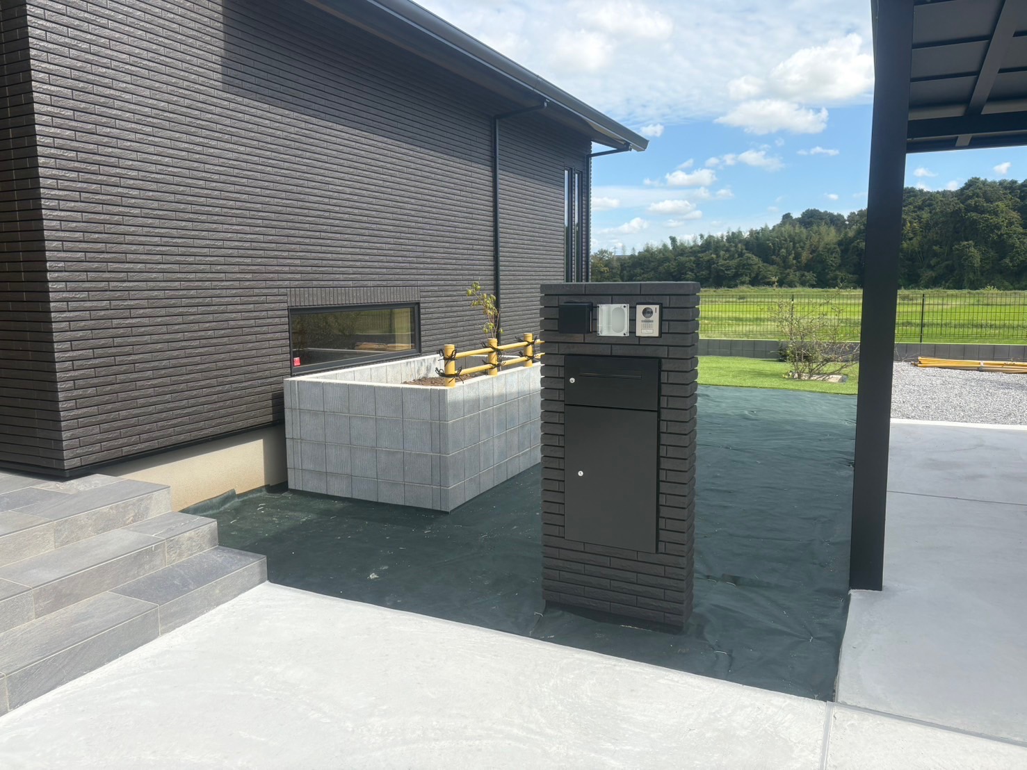 シックな外壁に合わせて黒を基調とした商材でかっこいいお庭になりました。